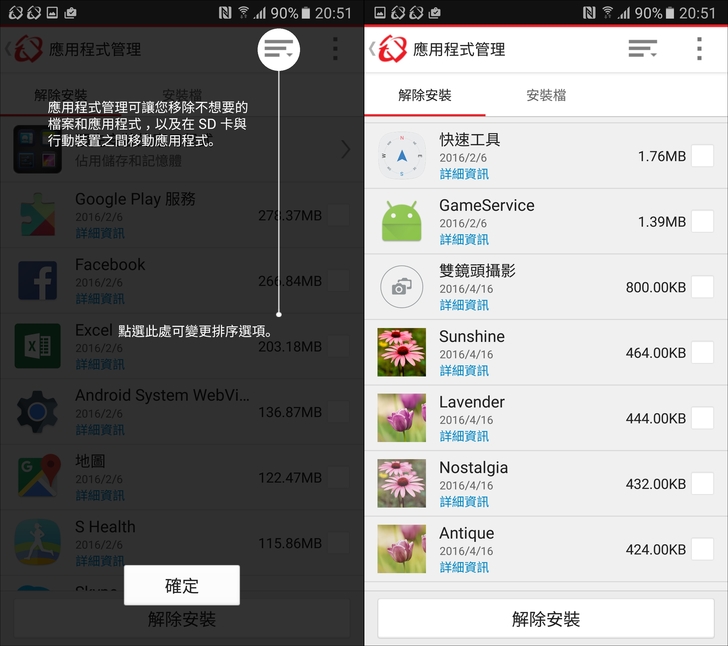 【▼】應用程式管理可以搬移、解除或排序行動裝置本機與SD記憶卡上的App,這功能雖然在Android原生系統就有,趨勢也將其整合在一起,算是蠻不錯的。