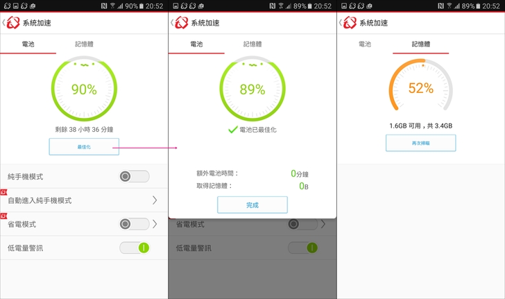 【▼】Google Play市集中,有一堆系統加速的App,不過有裝過的人就知道,一堆廣告AD,有時還會被裝上奇怪的軟件,真的防不勝防;不過趨勢科技的行動安全防護App就沒有此困擾,不但沒廣告外,更能最佳化電池與記憶體的容量,兩個願望一次達成!