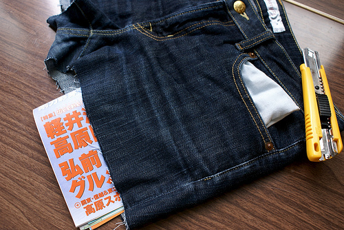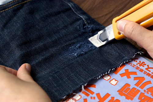 要準備的工具有美工刀、墊板或是不要的書本雜誌、還有最重要的牛仔褲。