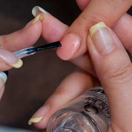 指甲前端的指甲油最容易剝落了,整體塗完之後最後的步驟就是要在前端補強加厚。