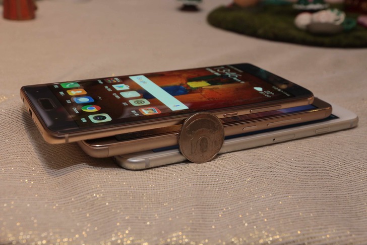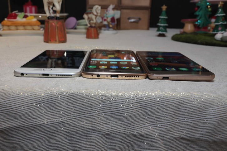 首先馬上來比比看Mate 9 Pro實機大小,都是5.5吋對照組特別選到「人生勝利組」的iPhone 6 plus,以及「青老年高CP組」的Redmi Note 3,其實機大小長寬厚量化數據分別為152.0 x 75.0 x 7.5;158.1 X 77.8 X 7.1;150.0 x 76.0 x 8.7,單位都是mm,比較時螢幕都開到最亮(iPhone有貼減光膜稍微有些影響),分別還測試了可視角以及厚度,由圖中不禁讚嘆造機工藝可說越來越先進,最新的Mate 9 Pro表現十分傑出,充分發揮其AMOLED色澤鮮豔、可視角廣的優點。另外,厚度部分都不能換電池,因此電量續航顯得十分重要,在此部分體積最小的Mate 9 Pro居然有最多的電量,達到4000mAh。