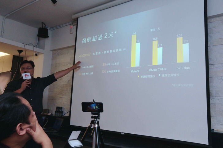 很快地,專業的華為Mate 9 PM (簡稱他美酒PM男) 馬上為現場的來賓,如數家珍般地介紹Mate 9系列手機強大的地方。其中Mate 9 Pro的雙曲線設計靈感來自Porsche流線型設計,其實Mate 9 Pro就是國外知名Mate 9 Porsche DESIGN的孿生兄弟,外觀效能配備全都一樣,加上Porsche DESIGN硬是要價多出一倍以上。