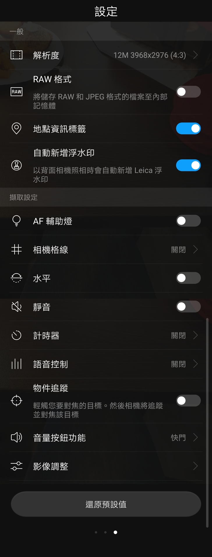 持續把玩Mate 9系列相機介面,會發現其與P9 plus別無二致,一樣可以拍可塑性高的RAW、印上迷死人的Leica Dual camera浮水印外,更提升了像素來到20MP、4K攝影,加入了光學防手震、兩倍無損變焦...等,因此已有P9 plus的朋友們,不仿無痛升級擁有二代目的Leica雙鏡的Mate 9系列手機,會有更好的照相體驗。以下往左滑一樣是設定選單,而往右滑則是模式選單。