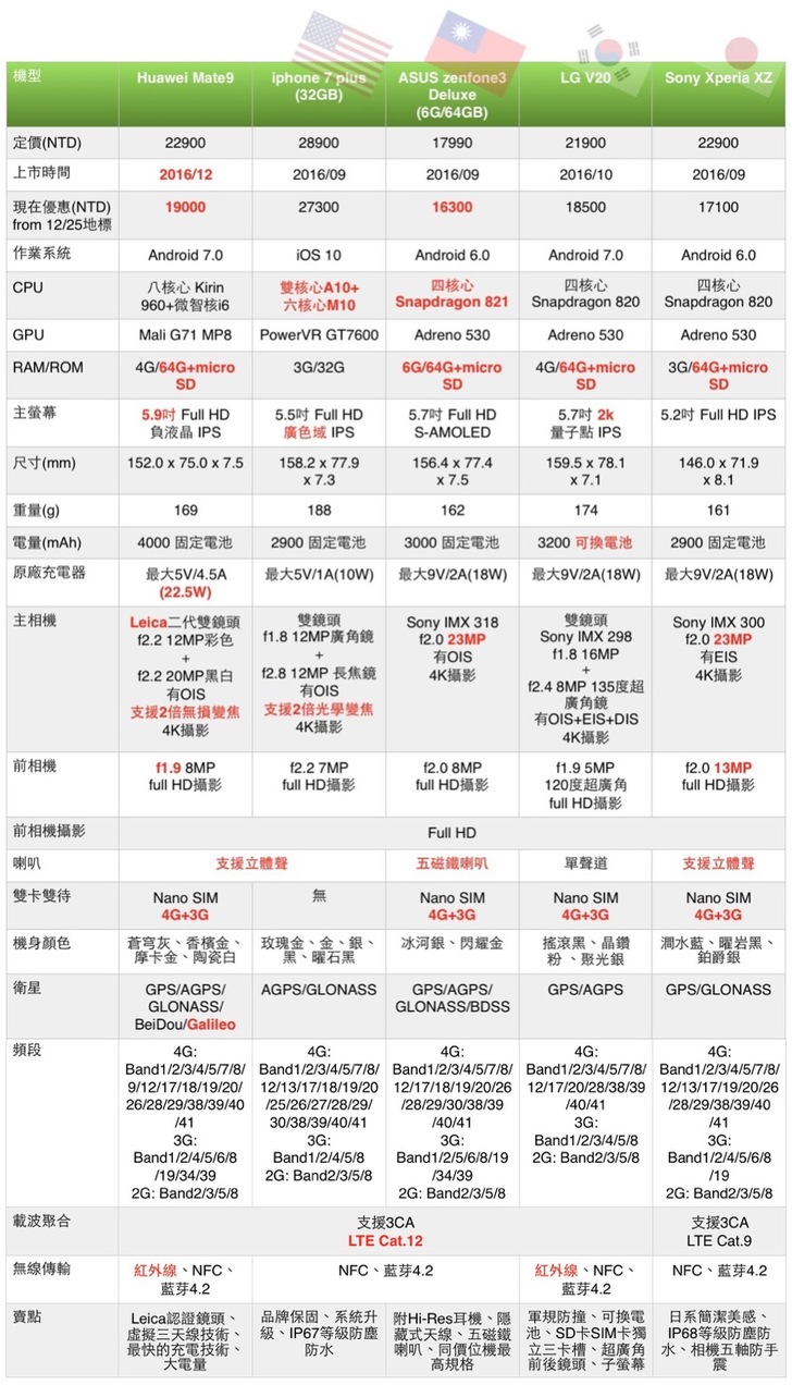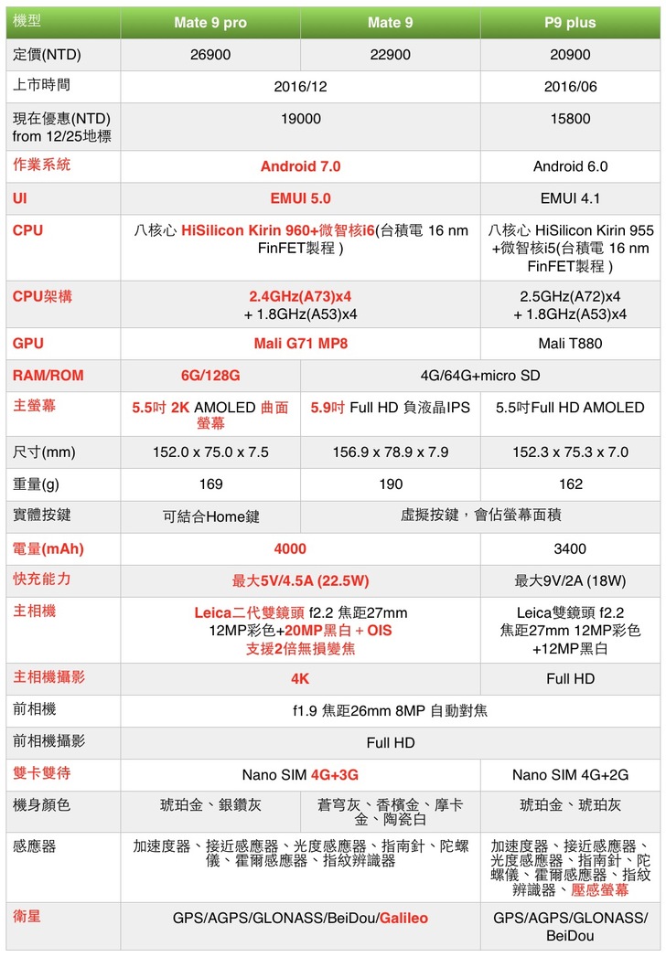 接著找來各國菁英好手來對打,以規格最相近的標準(本文在此以mate 9作為代表,mate 9 Pro僅ROM/RAM、螢幕解析度、機體大小設計以及能否外接micro SD有別),得出來的結論為要效能新奇兼具選mate 9,而且看齊價錢是有在漸漸跳水的趨勢,想入手可以趁早,因為華為手機跳的幅度不會波動太大,而要高CP值就支持國貨ASUS。