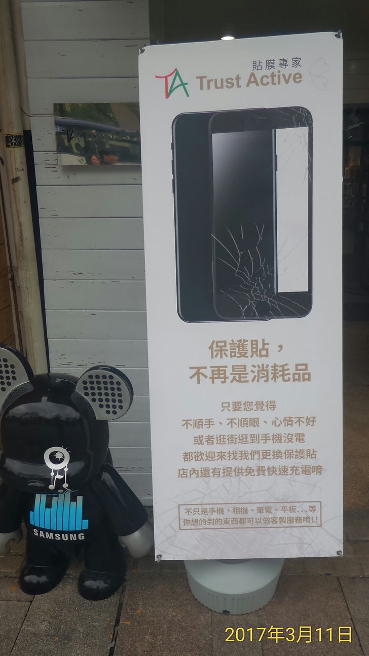 陳店長親切的大家招呼大家來開始認識Trust Active. 這家的保護貼不強調硬度,而是安全性. 你不會沒事故意去重壓手機螢幕來測試保護貼的硬度,但你可能會不小心掉落手機,此時保護貼是否能除了保護螢幕外,還能保護人身不會因玻璃碎片四處亂飛而受傷. Trust Active的玻璃保護貼有膠合材質,可緊緊黏牢玻璃,避免飛散. 而且我還第一次聽到貼膜有保固的!