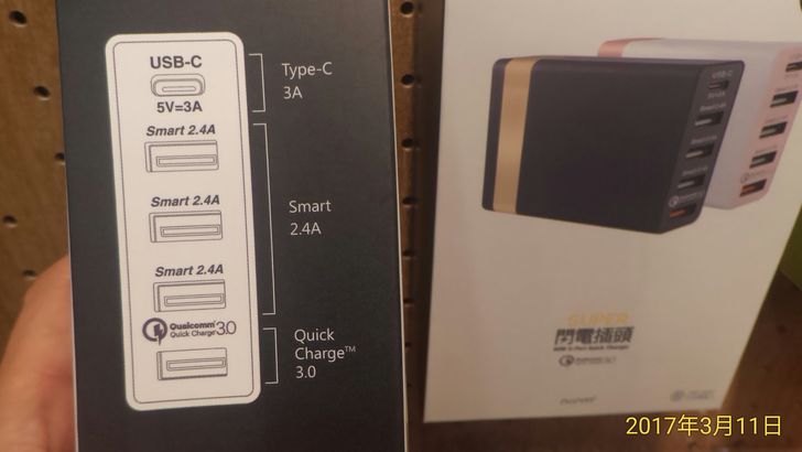 快充閃電插頭小顆的$1290,有可變換插頭,讓你全球到處趴趴造都可快充. 大顆的$1580,有5孔輸出. 2顆都有USB-C,還有QC3.0認證.