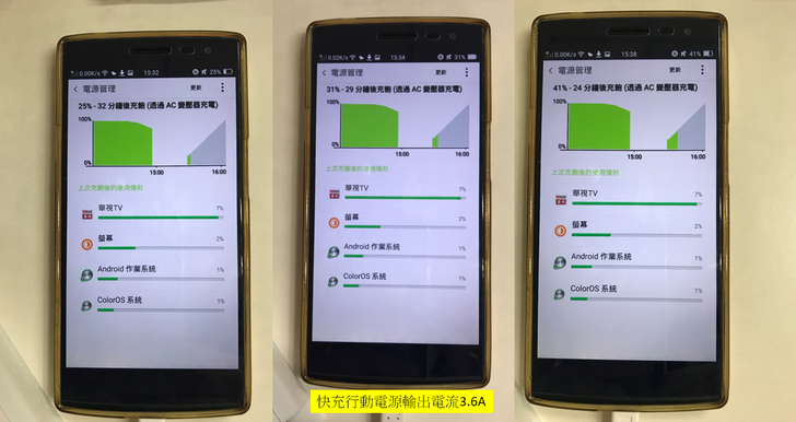 ▣快充行動電源輸出電流3.6A(只要6分鐘,給你16%電力)