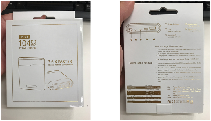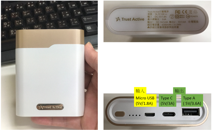 ▣輸出接頭:Type C(5V/3A)、Type A(5V/3.6A)