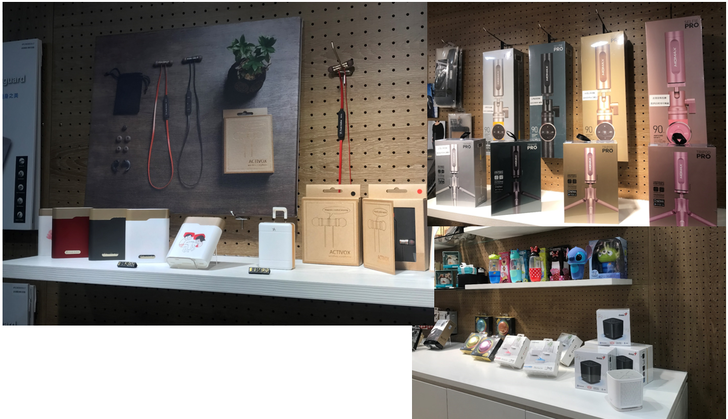 ▲週邊商品販賣(行動電源、藍芽耳機、藍芽自拍腳架、藍芽喇叭)