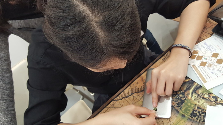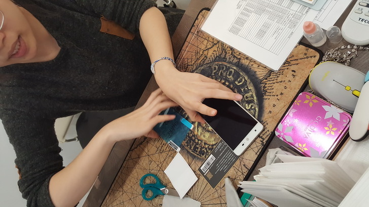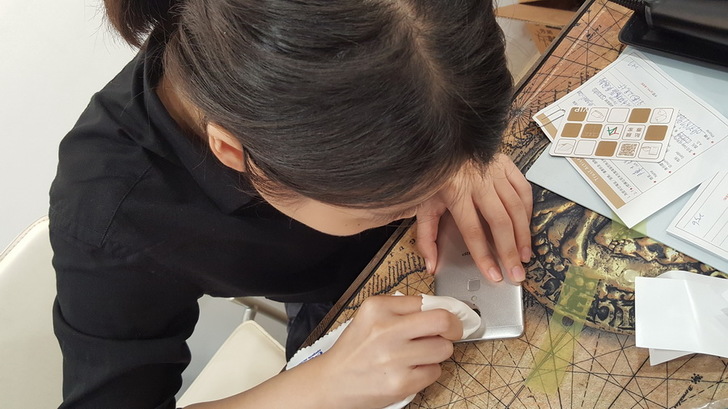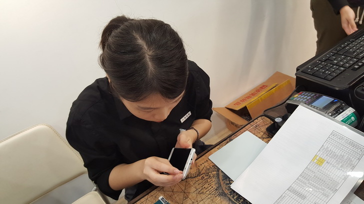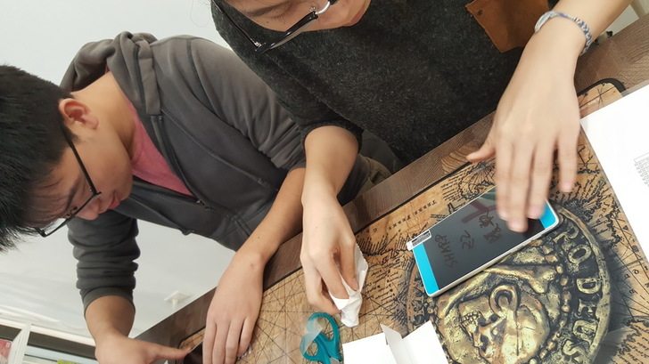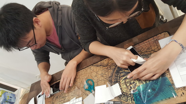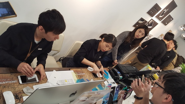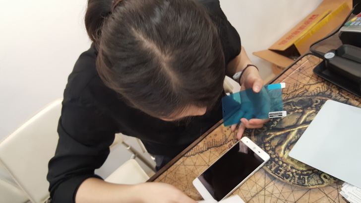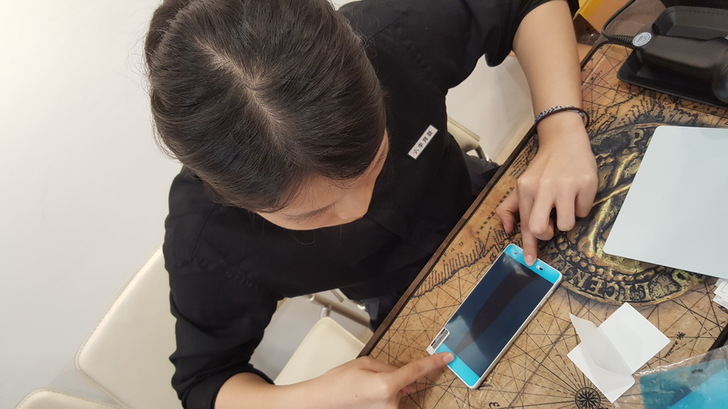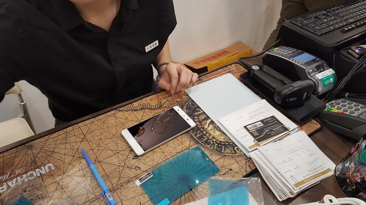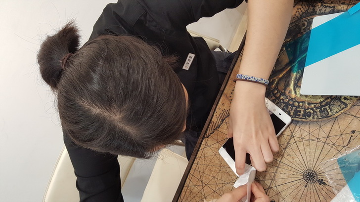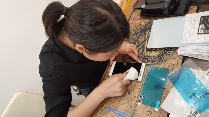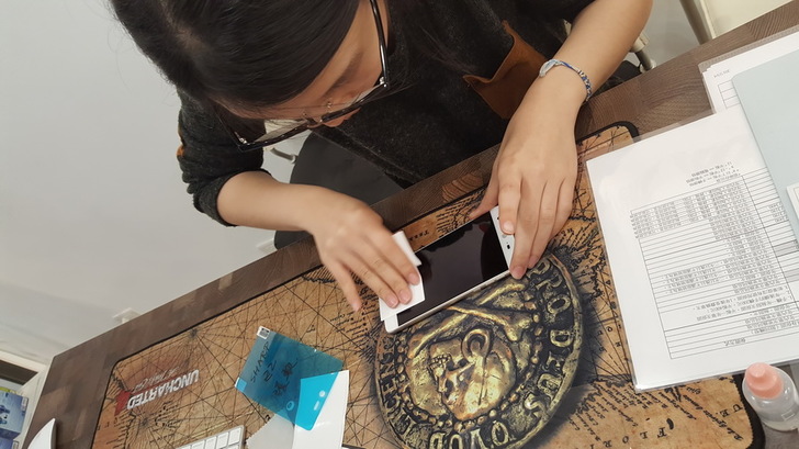 ▼ 在我的手機施工的同時,店內也來了兩位香港遊客,經由介紹以後,馬上就決定換新的保護貼。