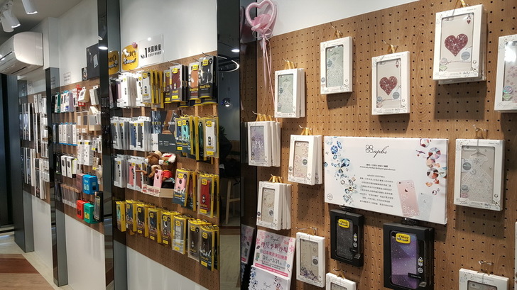 ▼ 一進店門口,可以看到牆上滿滿的配件,尤其是保護殼選擇超多樣化。