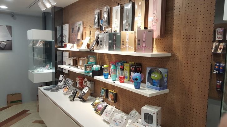 ▼ 店內後方一邊是放了 藍芽喇叭(可愛造型、時尚造型)、自拍架、行動電源、充電座。