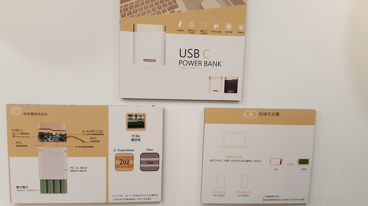 ▼ 有別於市面上絕大部份的行動電源,Trust Active的還支援了 TYPE-C 接頭,而且還支援 快速充放電。