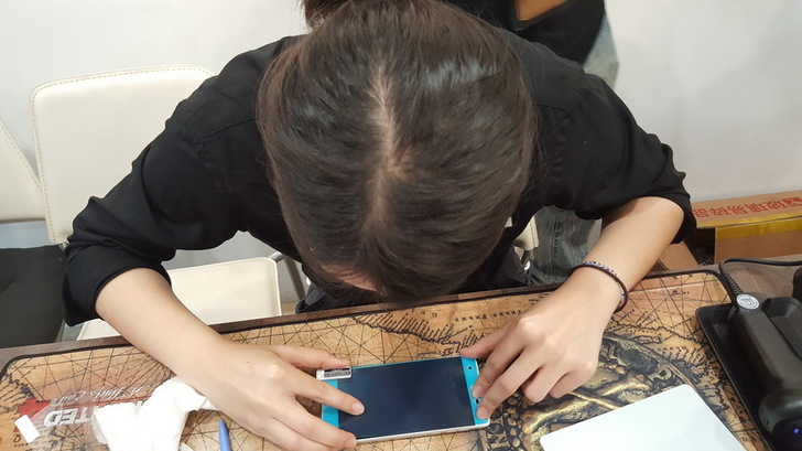 ▼ 服務人員 小心翼翼的把我之前爛爛的保護貼先撕下來。