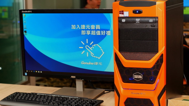 這台橘色外殼的電腦造型很搶眼,有變形金剛的FU,這台也是宙斯機,同樣搭載Intel Optane Memory,只是CPU的規格比頂級機低了一點。目前在市面上很少看到這麼亮眼的桌上型電腦啊。