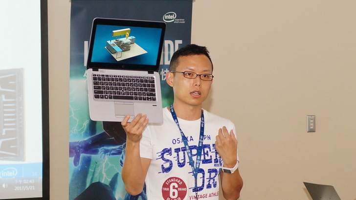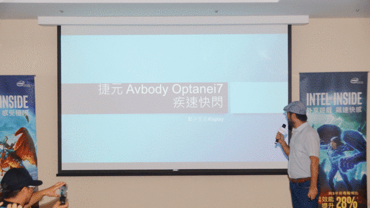鬍子哥真的很有喜感,他是點子生活的總編輯Kisplay,每次看到他我都會想小科科恰爾斯筆下的老闆到底是不是他。他講的部份是比較輕鬆的一面,他來分享他試用搭載Intel Optane Memory的捷元電腦心得,但我覺得他試用的那一台跟我試用的那一台根本是同一台,因為他提到本來說測試機有獨立顯示卡結果沒有,跟我一模模一樣樣耶。