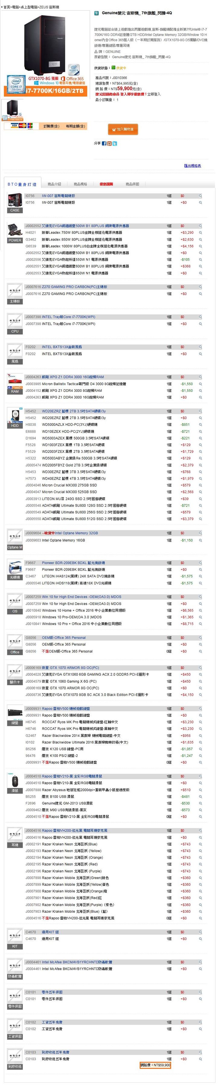 說到客製化服務,我特地看了捷元網站,以旗艦宙斯機來說,可選擇的配件超多,而且最小訂購量不是100台不是10台,居然是1台。1台就接單啊!