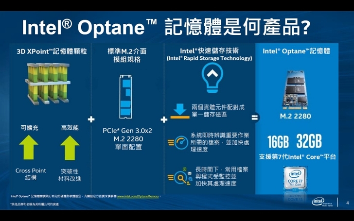 第二個是Optane Memory,目前有16GB, 32GB兩種容量,M2規格(不過還是走PCIe3.0)