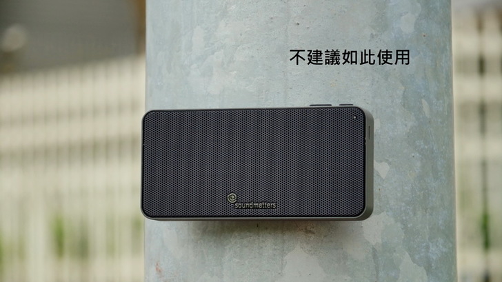 出門在外,拿著「Moment」喇叭到處試哪裡可以磁吸,其實在外人眼裡也是怪怪的吧,我試過電線桿可以,但還是不保險,因為電線桿是圓弧的,「Moment」喇叭背面的四顆磁鐵無法吸到電線桿,只能靠正中間磁吸充電處去磁吸電線桿,而且接觸面積很小,也是有掉到地上的風險。
