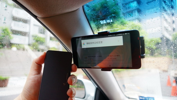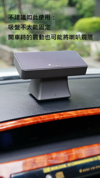 接下來考慮把充電座吸在駕駛座前,我只能說很不穩定,難保開車時的震動不會把「Moment」喇叭震下來(不確定但不想冒險)。