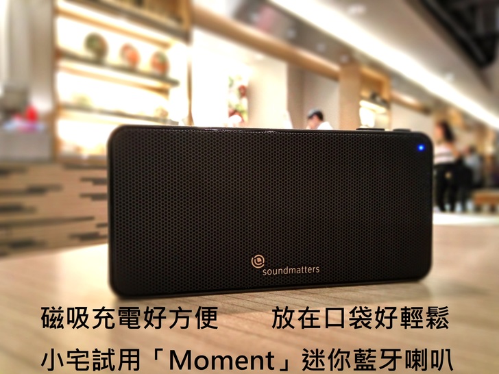 「Moment」這個喇叭訴求的就是輕巧方便,卻不會忽略HiFi立體聲,所以當你拿到這個喇叭,你應該帶這個喇叭到處啪啪走,開心的邊走邊聽歌。不要被那四顆磁鐵拘束了,更不要一直把喇叭供在家裡。