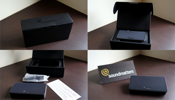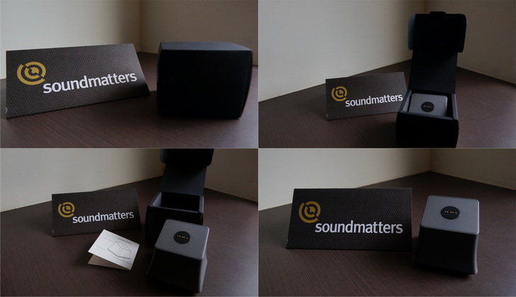 彩盒打開後,是全黑很穩重的內盒,上面有Soundsmatters字樣,打開後喇叭在上面,下面有一條USB線與一張小卡片,沒有說明書,大概小卡片就算是說明書了吧。