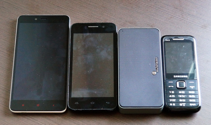 對照組的部份:一隻是2.4吋傳統非智慧手機,一隻是4.5吋手機,一隻是5.5吋手機,得出來「Moment」這個喇吧,比4.5手機小,比傳統手機略大一點點。