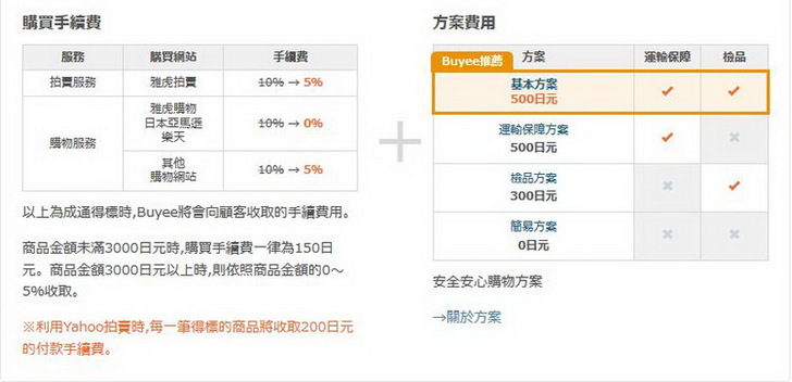 購買手續費與方案費用:Buyee也不是慈善事業啦,代購還是要收一點手續費的,但是針對三大網站(雅虎,亞馬遜與樂天)免費!