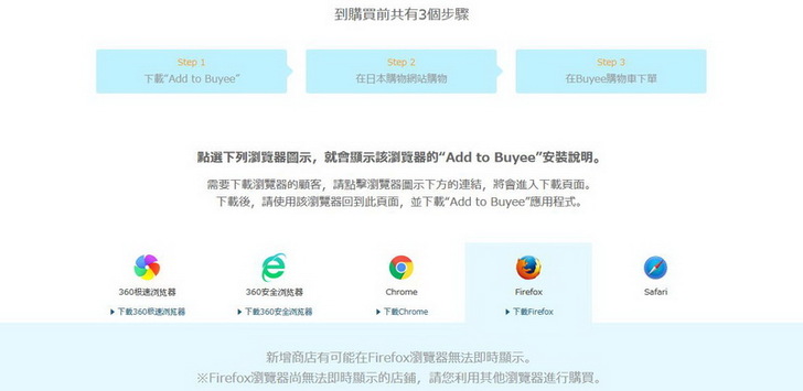 首先下載Add to Buyee,這算是瀏覽器插件,所以不同的瀏覽器要安裝相對應的插件,但沒有IE用的瀏覽器插件(IE哭哭…..)