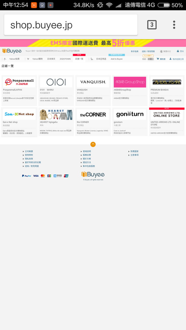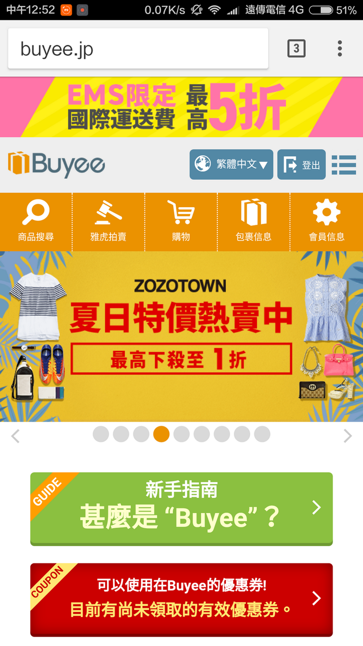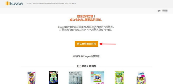 如果你按下小畫面左邊的Buyee,瀏覽器就會帶你到Buyee的首頁。