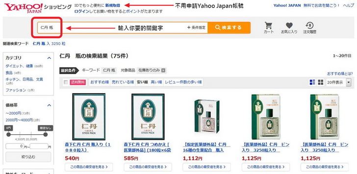 仁丹在日本很普遍,藥粧店都買得到,但我還是對Yahoo購物熟悉一點,所以我選擇在Yahoo Japan購物來買。