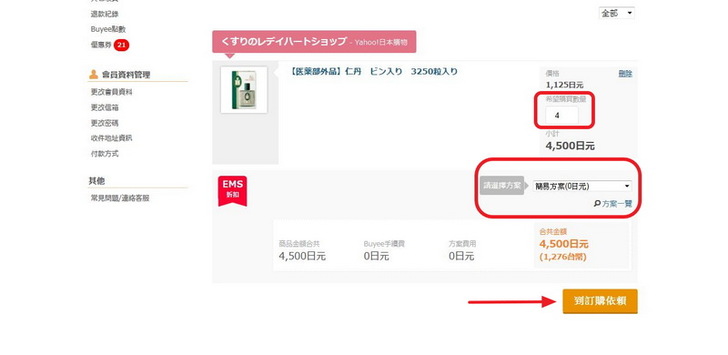 我娘的口味兒快吃完了,所以我選擇最快的EMS寄送。這裡的費用是日幣1820元,真的比送到超商的日幣2070元少了日幣250元。