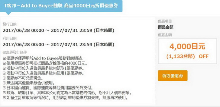維克多因為參加T客邦與Buyee合作的體驗活動,所以有一張日幣4000元的特別優惠券,在這裡就用上了。