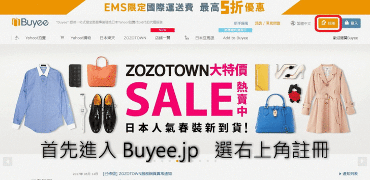首先你先連上buyee.jp這個網站,選右上角註冊