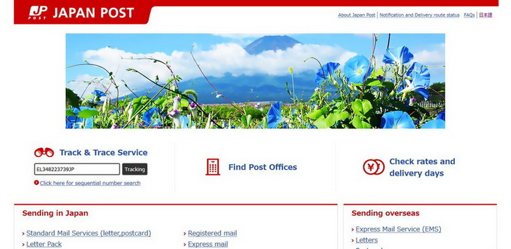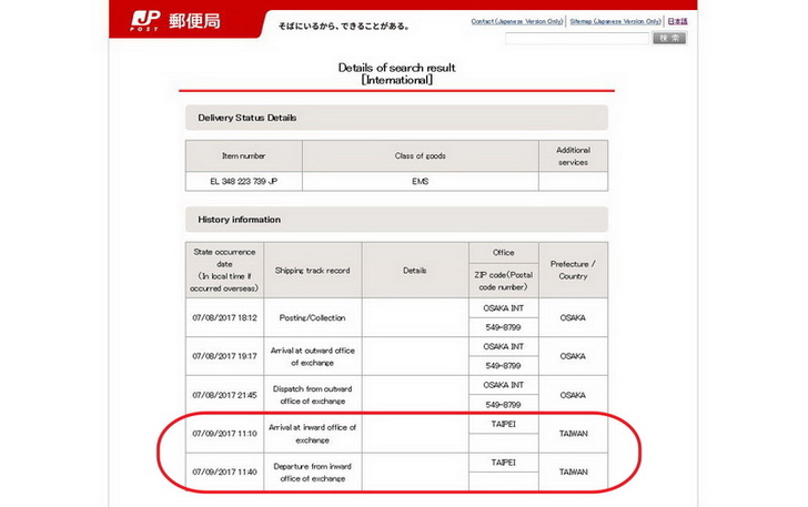 2017-07-09中午我到日本郵政的網頁查一下進度