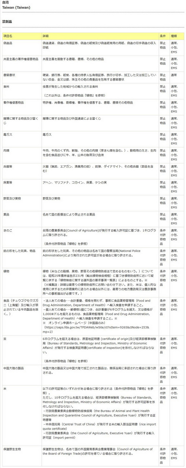 至於進入台灣的違禁品如下,千萬不要為難廠商也不要為難自己啊。