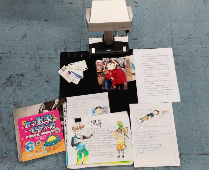 為了解決突破A3限制,筆者想到將掃瞄器抬高(底部墊東西),這樣看起來可以掃瞄更大的物件譬如學生製做的海報,掃瞄結果是影像模糊,應該是富士通影像掃瞄器 ScanSnap SV600對焦距離已設定好,所以掃瞄尺寸還是按照原廠說明(最大:432 x 300 mm,最小:25.4 x 25.4 mm),保證可以得到優質的掃瞄影像,除此,一些立體物品也不適合掃瞄,如果是較為平面的作品如拚貼等,就可以順利掃瞄。