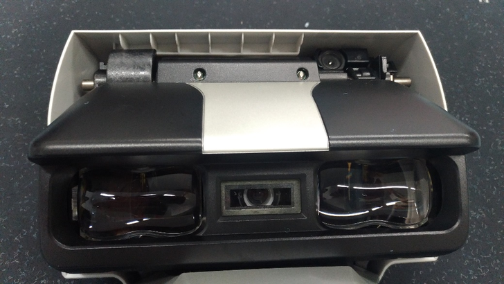 【▼】富士通影像掃瞄器 ScanSnap SV600心臟部份 右上方景深鏡頭,下方二側有高亮度LED燈,下方中間為CCD掃瞄鏡頭,也是所謂的「VI technology」硬體技術