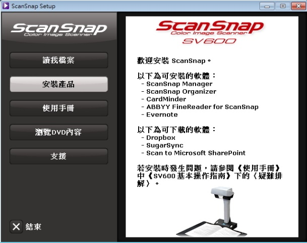 【▼】富士通影像掃瞄器 ScanSnap SV600軟體安裝影片檔