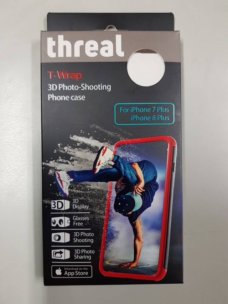 Threal 3D 拍照手機殼的外盒,在上面就很清楚的寫出它的四項特色: