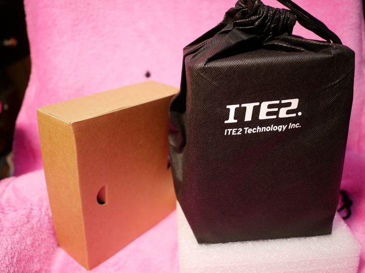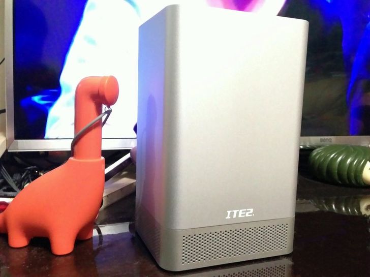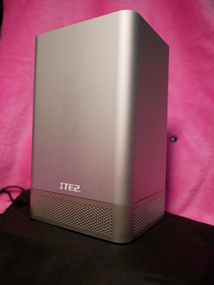 機身為鋁合金,正面印有ITE2的字樣,底部四周與頂部有散熱孔。