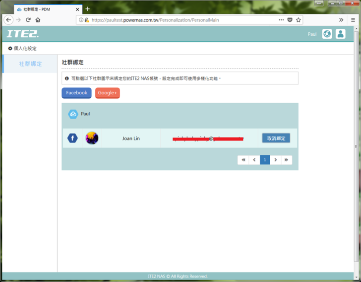 個人化設定裡面可以進行社群FB或Google+的綁定,就是剛剛在使用者管理頁面有提到,讓好友可以一鍵申請登入,以及方便管理權限使用,所以我覺得這個頁面可以合併到使用者管理頁面裡XD設定頁籤的主要功能到這邊,接下來讓我們看看其他功能。