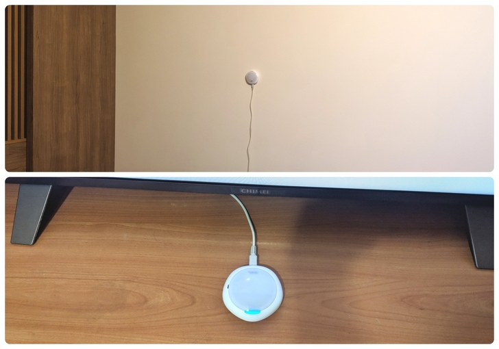 首先是智能小管家,它可以安裝在牆上或是直接放在桌上,不過建議放在較空曠的地方,因為它上面還有溫溼度及紅外線感測器。