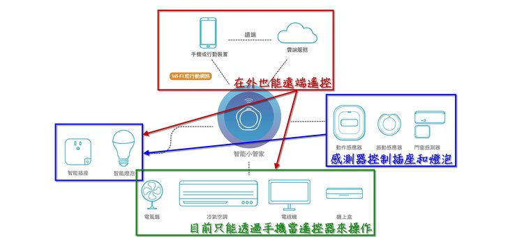 目前 EQL 宜優科技仍然在強化「智能小管家」的功能,很多人或許也發現到了,難道不能"利用感測器來操控用紅外線控制的家電嗎"、不能"溫度高於幾度,就自動打開冷氣嗎"、不能"控制其他能用遙控器操作的電器,像是音響、天花板吊扇嗎"。