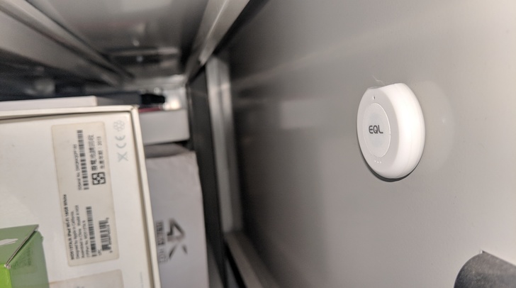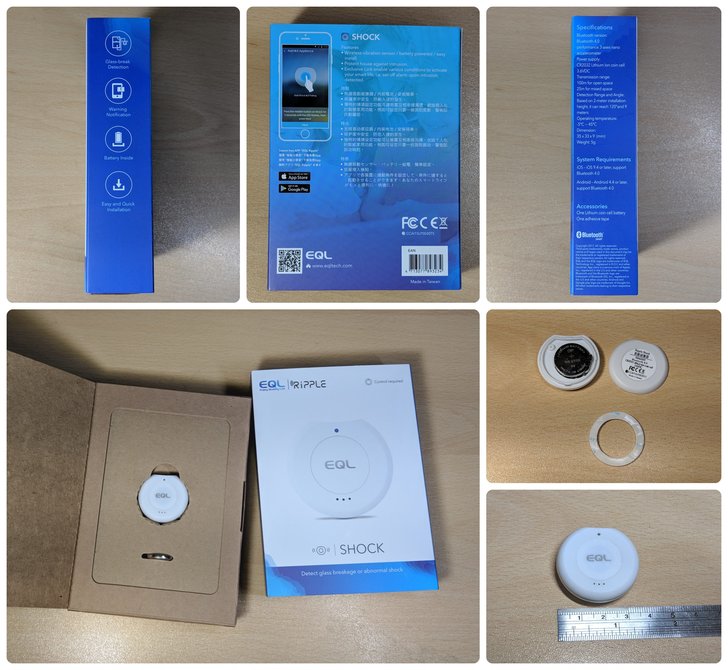 顧名思義,震動感測器只要感測到一點震動就會發出通知,且震動感測器的寬度僅 3.5 公分,因此適合貼在保險箱門的背後、珠寶盒內、書桌抽屜等私人或貴重物品的地方。配對方式是按下正面 EQL logo 圖示,直到藍燈閃爍即可配對。