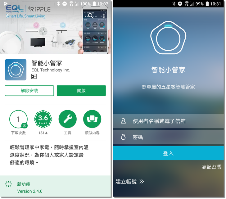首先,請到 Play 商店或 App Store 來下載《智能小管家》這款應用程式;首次開啟需要登入,或是建立一個新帳號。
