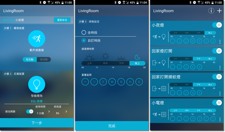 PS. 下圖最右邊是智能情境的設定列表。