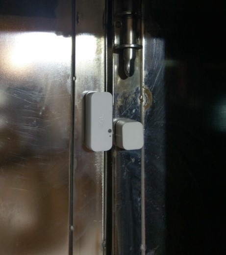 EQL門窗感應器,安裝在家裡的大門上,當大門被開啟的時候、智能小管家會透過APP推播的方式傳送通知、讓我知道大門被打開、以及被打開多久時間,搭配家中原有的監視系統,可以讓我輔助判斷是有小偷要入侵、或者只是家人在整理環境打開大門。