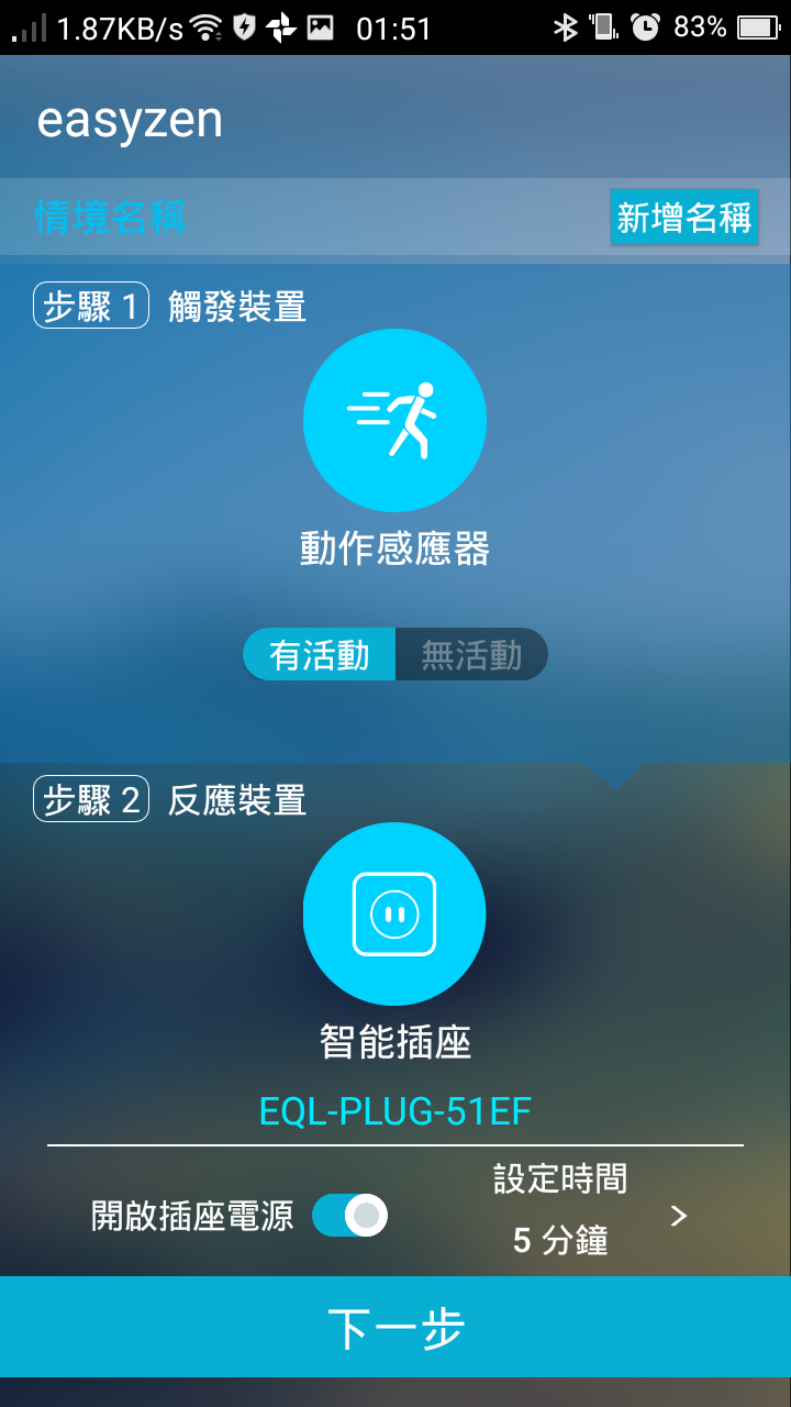 我設定了動作感應器去啟動燈泡5分鐘後關閉
