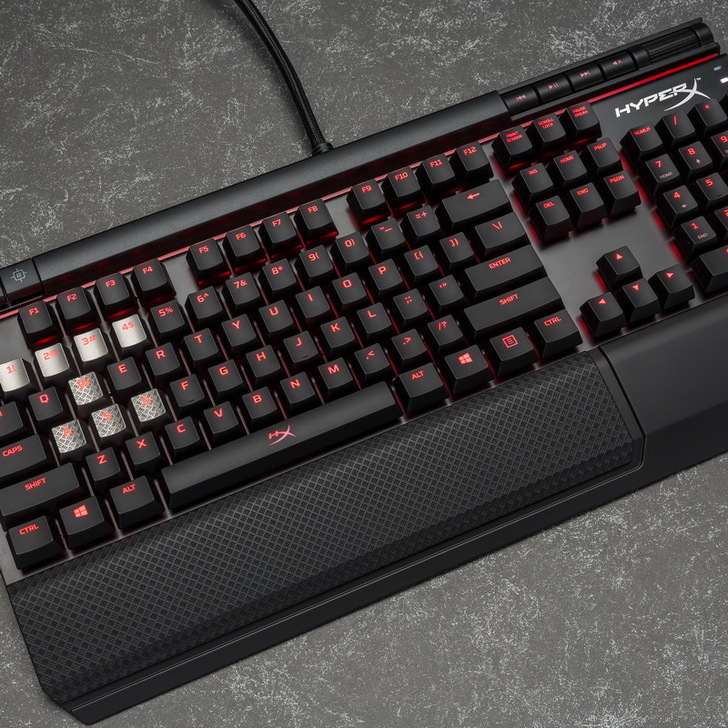 附帶加強紋理的鈦金屬色鍵帽和 HyperX 拔鍵器